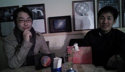 (中林(左)と日本画家の草住さん(右)前橋のカフェアルキロコス様にて)