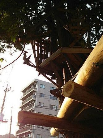 午前中の間にツリーハウスがずいぶん立体的になりました。