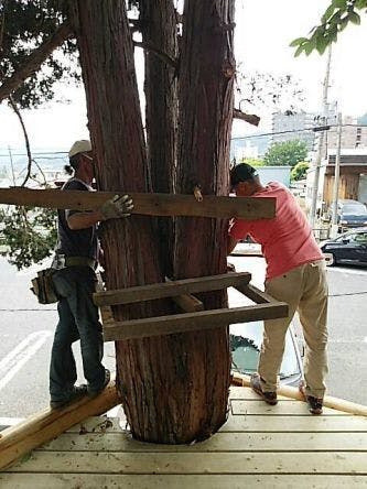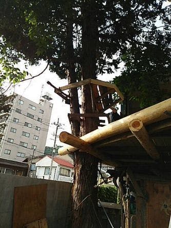 そして、その上にさらにツリーハウスの床になる部分を作っていったんだけど。。。