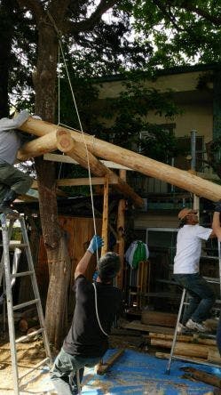あちこち丸太を上げていきます!