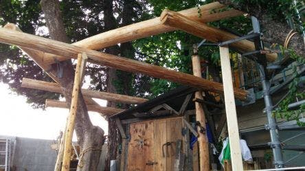 これがツリーハウスに向かうデッキの骨格になるのデス。