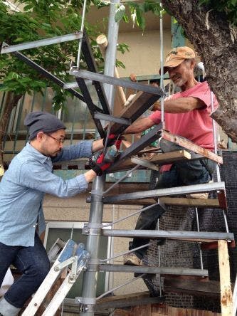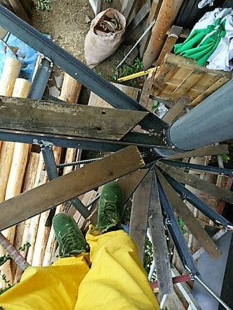 ぐらぐらして怖いけど、次はこの階段に手すりをつけていって、安定させていくんだって。なるほど。。。