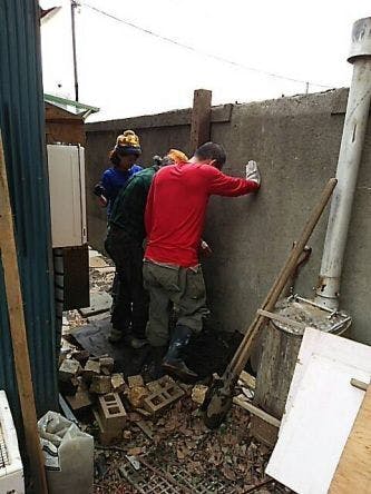 それを流し込んで、鉄柱を立てて、さらに礫と一緒に流し込んでを繰り返していきます。