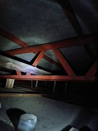 これ、屋根裏なんだけど、鉄筋の建物だから鉄骨がこんな感じで張ってあるの。