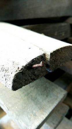 こんな古くなった釘が残っているし、それが抜けないように曲がって刺さってたりするので、それを切ったり、削ったり、叩いたり、抜いたり。