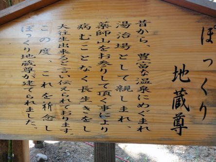 このお地蔵さまは、地元薬師山本正院にあり、この土地の温泉で湯治をし薬師山でお参りをすることで病むことなく長生きをし大往生できると言い伝えられていたそうです。