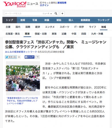 昨晩、Yahoo!ニュースに渋谷ズンチャカ!のことを取り上げて頂きました!