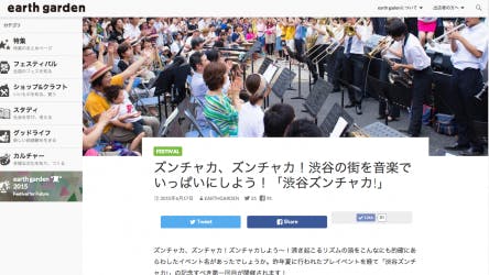 渋谷ズンチャカ!を、Think Future, Live Now.なウェブマガジン【earth garden】さんに取り上げて頂きました!