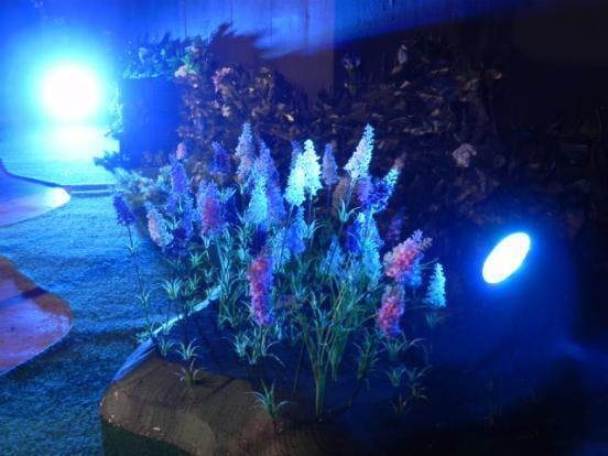 シンガーソングライターの北村早樹子さんを音楽に迎え、渋谷のギャラリールデコを青い花畑で埋め尽くした現実と幻想が絡み合うコラージュ芝居。
