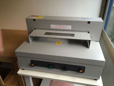 裁断機は業者さんとの相談のうえ電動のA3幅のものを導入しました。