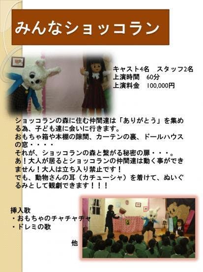 【団体名】ぬいぐるみ人形劇 ショッコラン