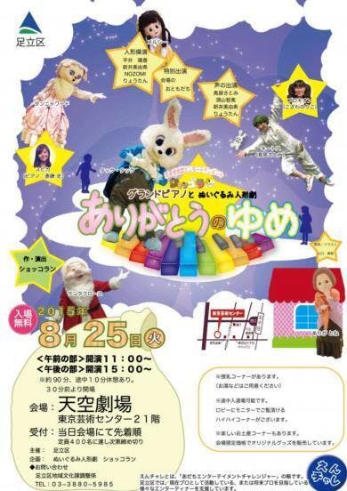 【ありがとうのゆめ】THE☆参加型エンターテインメント。客席のみんなを巻き込んで夜空に出かけたり、みんなで楽器を演奏したり・・・「ありがとう」と「ゆめ」と「友達」がテーマの作品(今夏初演)