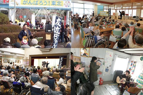 東日本大震災以降「笑顔届ける施設ライブ」と銘を打ち、このような活動をしてまいりました。