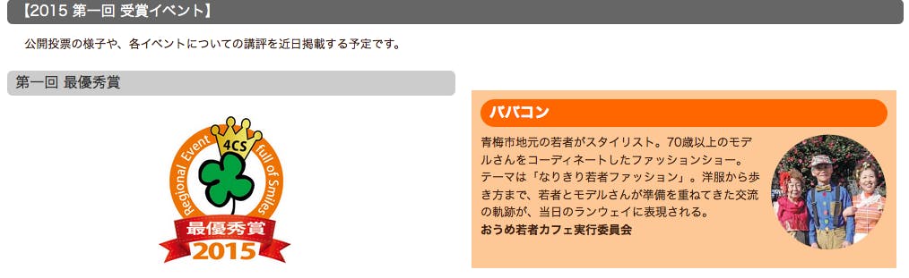 1つ目は地域イベントアワードで最優秀賞を受賞