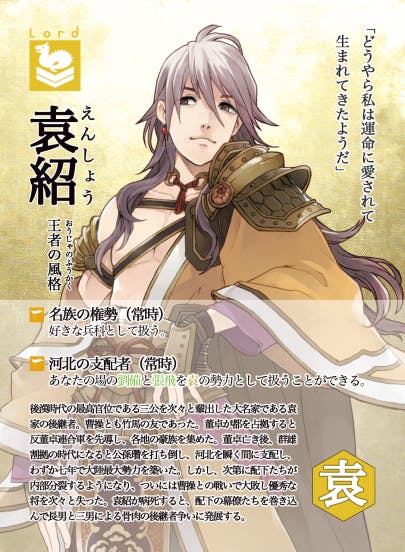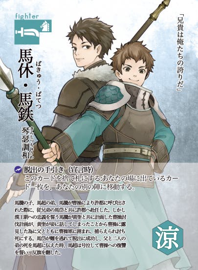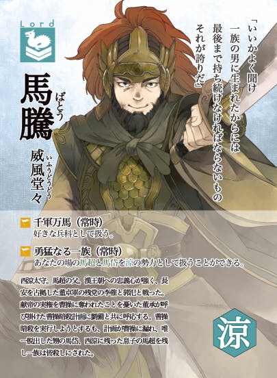 今回登場するのは馬騰率いる「西涼軍」袁紹率いる「袁紹軍」の2つの勢力が登場。今まで登場した「蜀」「魏」「呉」「漢」「群」「晋」に加え、益々三国志の世界観を楽しむことができるようになります。