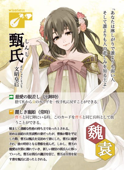 袁紹の次男袁煕の妻だったが、曹操が冀州を攻め落とした際に曹丕に見初められ妻となる。