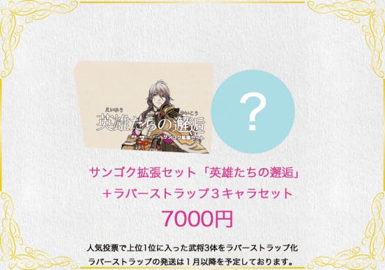 今回もお得なリターン品を用意し、さらにストレッチゴールも設定させていただきました。ご支援頂いた方により、サンゴクの世界を楽しんでもらえるストレッチゴールになっていますので、ご支援をよろしくお願いします。