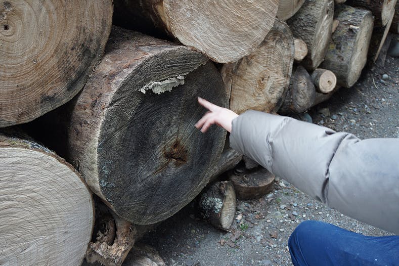 小)マジで寒かった。なのに、敷地内に積まれた、切り倒した桐の木を見ながら、木の善し悪しの話に夢中になってました。