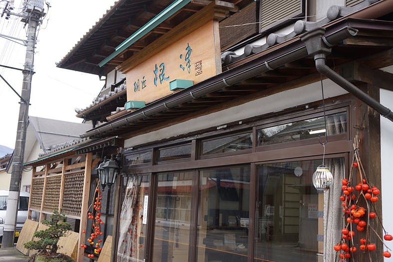 「桐匠 根津」さんの、風情あるたたずまい。この正面に茂左衛門屋敷跡がある。