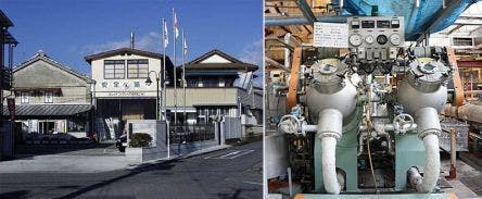 左:朝倉染布株式会社 右:染色の機械。正式名称不明。