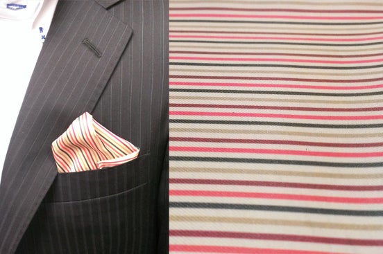 北条氏康スーツの内ポケットの縁にあしらっている生地で製作した五色備えチーフを追加でプレゼントします。