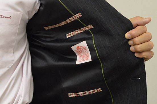 北条スーツの特長1: 「禄寿応穏」虎朱印の織ネーム