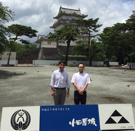 ▲左 NFL代表「川辺友之」 右 起案者「酒匂雄二」 2015年7月17日小田原市観光課での打ち合わせで小田原訪問。 こんにちは。大阪の紳士礼服メーカー、株式会社NFLの酒匂雄二と申します。大阪でスーツ作りを行う弊社NFLは縫製業界を盛り上げたい!という思いで、武将スーツという企画を開始。 2014年武将スーツの第一弾として、真田幸村モデル「不惜身命 真田幸村スーツ」を製作、全国に大阪の紳士服縫製文化と大阪のヒーロー「真田幸村」を発信というプロジェクトを企画、天王寺区長、天王寺真田幸村博の関係者様の応援もあり全国から約246万円のご支援を頂きました。続く2015年3月、愛知県の毛織物産業を盛り上げるべく第二弾「天下布武 織田信長スーツ」を開発、こちらも支援額が102万円を超えるプロジェクトとなりました。 その活動の中、FAAVO小田原箱根の方に出会い「次は是非小田原で!」という熱いオファーを頂きました。 五代90年に渡り関東を治め、今なお慕われ続ける北条氏より、特に人気の高い三代目北条氏康と小田原城をモチーフとしたスーツを製作。 北条五代の大河ドラマ化へ向けて盛り上がる小田原の町おこしのお役に立てればと、小田原市観光課の皆様や小田原の伝統工芸品である寄木細工の若手の職人さん、戦国プロデュース集団戦国魂さんと会議を行い、武将スーツ第三弾「禄寿応穏 北条氏康スーツ」開発プロジェクトを立ち上げました。