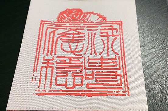 北条家の家訓「禄寿応穏」が刻まれた虎朱印の特製織ネーム。当時使われた印影よりデジタルデータで再現。細部のかすれまで緻密に表現しました。 【監修・協力:戦国魂】