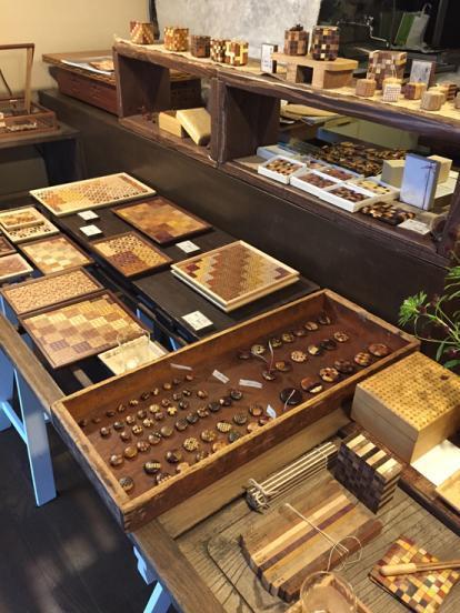 ▲2015年8月28日再び小田原を訪問。寄木細工職人グループ雑木囃子さんとボタンやリターン品の打ち合わせなどを行いました。 寄木細工は江戸時代後期に箱根の畑宿で石川仁兵衛氏によって創作さ れたと言われています。約200年の歴史の中で、技法も時代と共に進化していき、今では様々な模様を組み合わせた寄木を鉋で薄くスライスする「ヅク」と呼ばれる技法が開発され、この技法により大量生産が可能となり、今でも数多くの製品が生み出されています。 この優れた技術、技法が認められ、箱根寄木細工は昭和59年に通商産業大臣 より「伝統的工芸品」に指定されています。箱根駅伝の往路優勝チームには寄木細工のトロフィーが授与されることでも知られています。 この素晴らしい伝統の技術をスーツの部材に用いることで、広く小田原・箱根の伝統工芸を発信できればと 考え、ご協力頂きました。