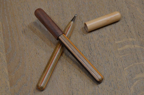 ■寄木細工ボールペン2本 小田原の伝統工芸品、寄木細工のボールペンです。 サイズ:約12.5cm(キャップ装着時) 3000円コース×2回のご支援より500円お得です。