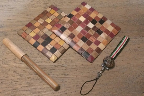 ■寄木細工のコースター4個 サイズ:9cm×9cm 4,500円×2回のご支援より500円お得です。