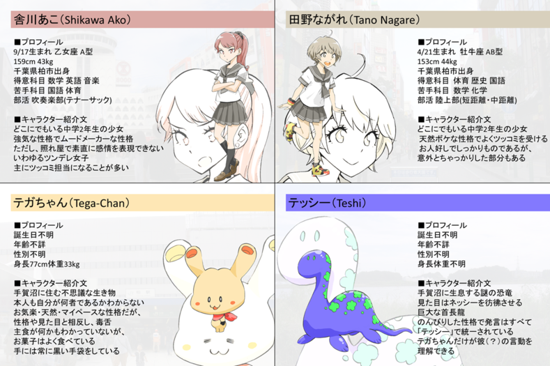 中学2年生の女の子『舎川あこ』と『田野ながれ』。2人が学校の自由研究で「手賀沼の生き物」を調べるために手賀沼へ来てみたら、見た目は可愛いけど毒舌な謎の生き物『テガちゃん』、謎の恐竜『テッシー』と遭遇する。宿題に提出できそうもない生き物を相手に、2人が出した結論とは?!