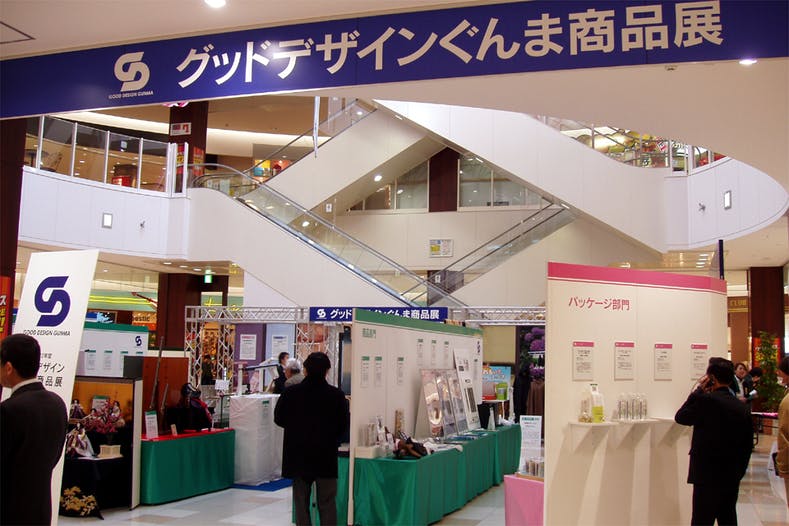 ▼けやきウォーク前橋(大型ショッピングモール)で開催された時のグッドデザインぐんま商品展(平成23年1月28日)の風景です。2度目の挑戦で健康ポケットがグッドデザインぐんま選定商品に選ばれ展示されました。
