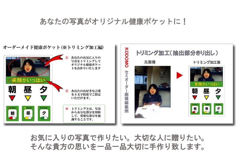 あなたのデジカメ写真がオリジナル健康ポケットに変身します!(肖像権や著作権など他人の権利を侵害しないご自身のデジカメ画像が対象です)