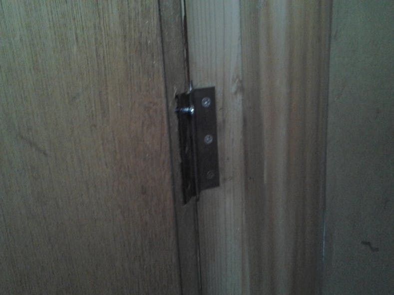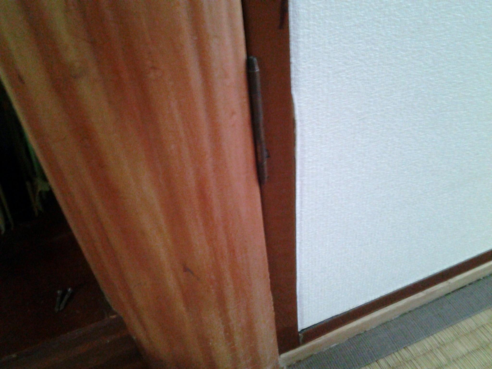 先日「ふすまがはずれて付けられない」との連絡をいただきました。鴨居が下がってふすまが入らなくなったのかと思いつつ、伺ったところ・・・開き戸のふすまで、ふちがはがれ丁番が取れていました。