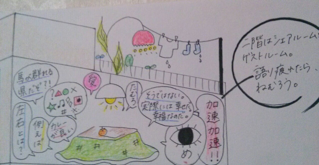 玉村町で2年間生活して私たちは、「なんだか一人暮らしは味気ない!もっと学生同士が自由に語りあったり、地域の人と交流できる『ただそれだけの場所』が必要だ!」と考えるようになりました。