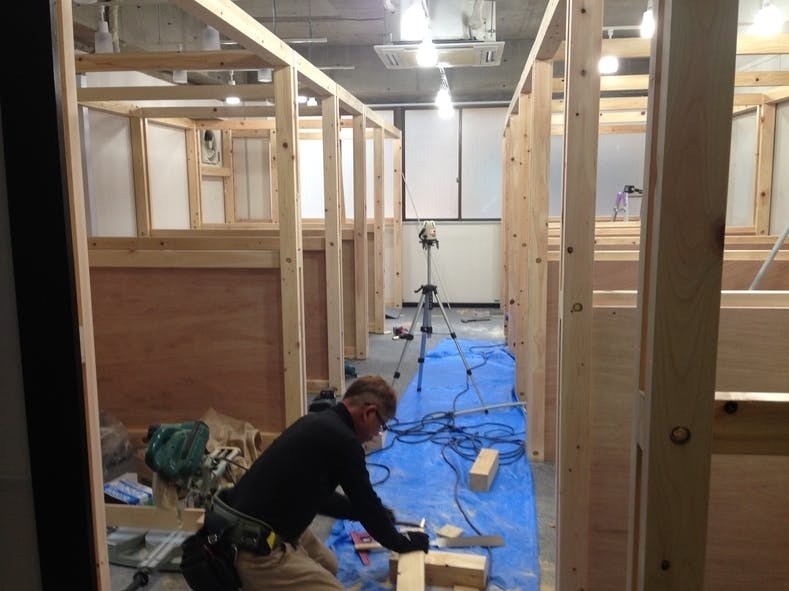 立川・森のシェアオフィスのヒノキブースが組みあがってきました!