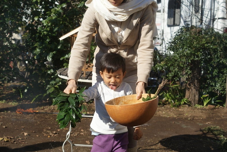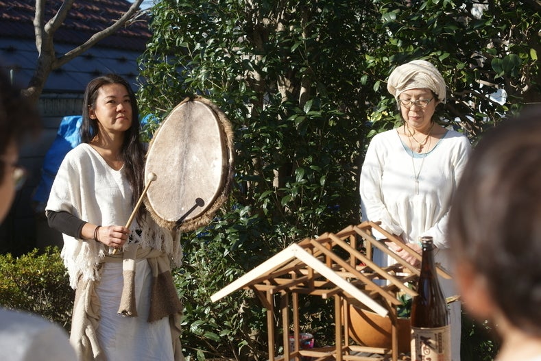 地鎮祭をつかさどるのは、まんまるお産がっこうで「おとだまワーク&アフリカンダンス」などの講師も務める Telespiana Keikoさん。