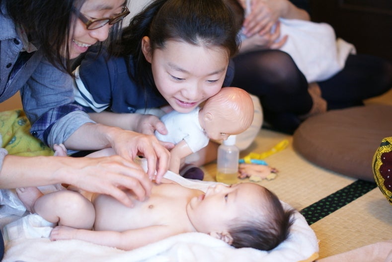 「人間が本来持っている野性の力をもっと取り戻して、『幸せなお産』を体験してほしい」と、まんまる助産院では、4年前から「まんまるお産がっこう」という取り組みをしています。
