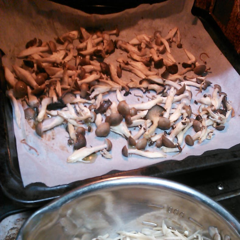 キノコをほぐして、塩とごま油をまぶしてグリルします。