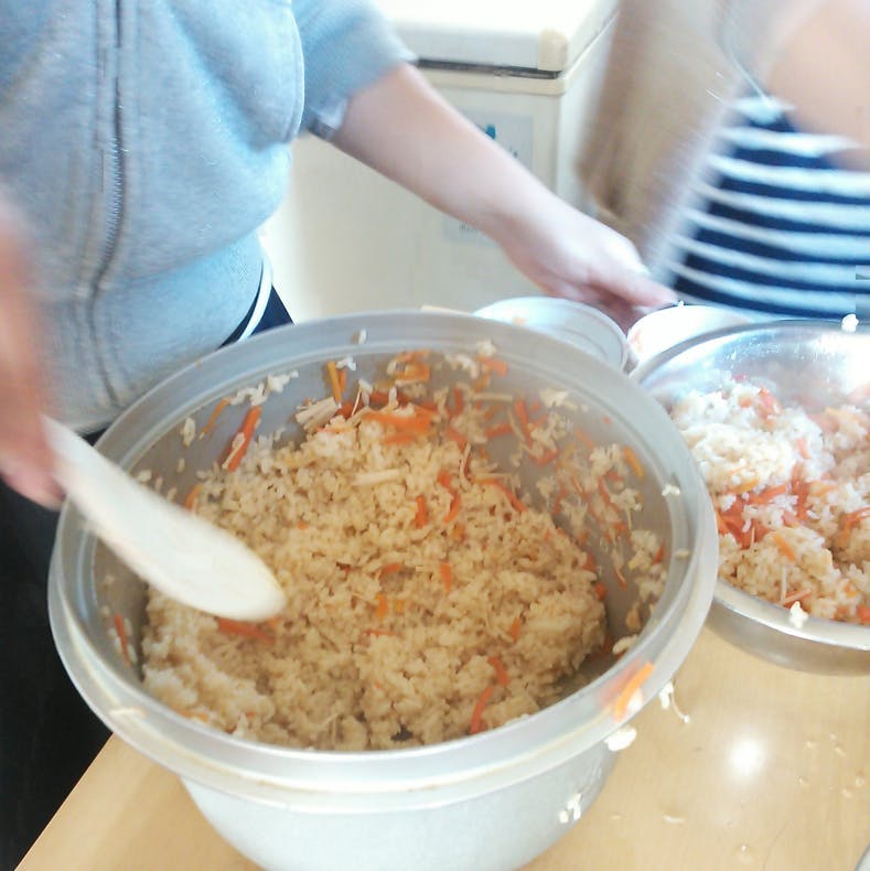 で、今回は、『キノコごはん』と『ニンジンとえのきとお揚げごはん』にしました。