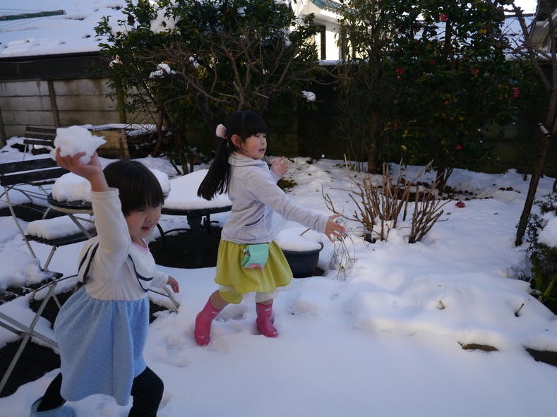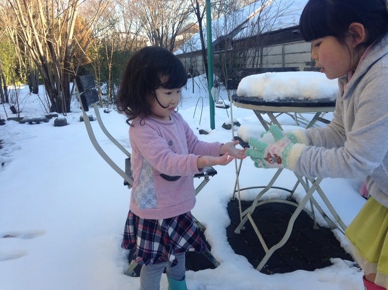 立川でも雪が降り、午後からは雨になったものの、助産院のお庭で雪遊びができました。