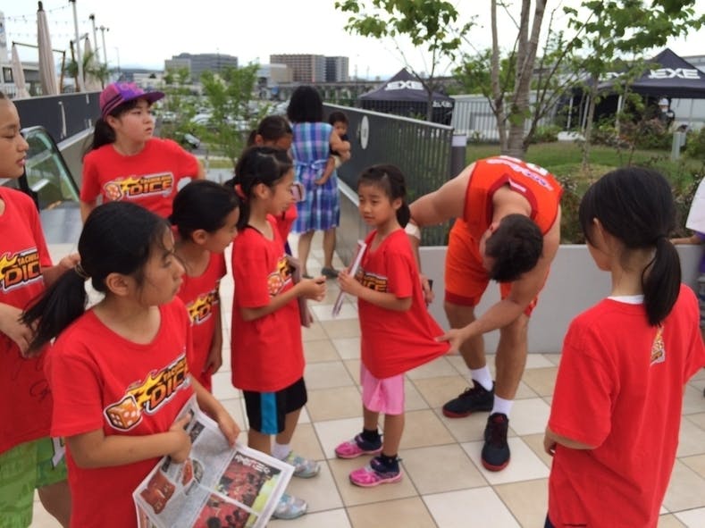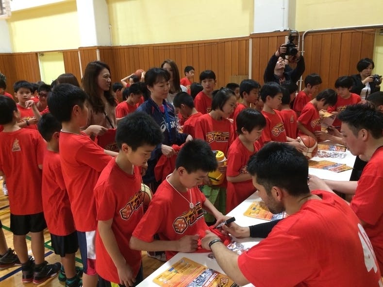 試合以外のクリニック活動では、子ども達からの人気は一番で黄色い歓声が沸きます。