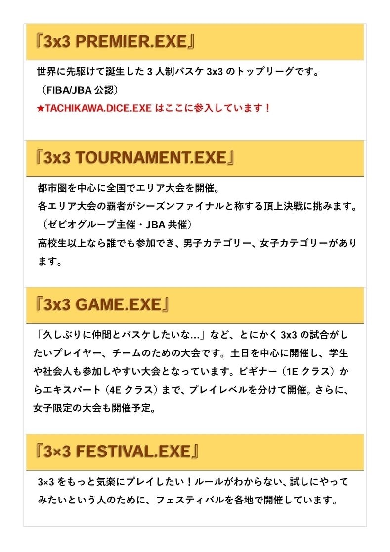 プロバスケットボールリーグ3×3 PREMIER.EXE(スリーバイスリー プレミア・ドット・エグゼ)リーグに参戦しました TACHIKAWA DICE.EXE(タチカワダイス・ドット・エグゼ) 事務局の高橋佑弥と申します。