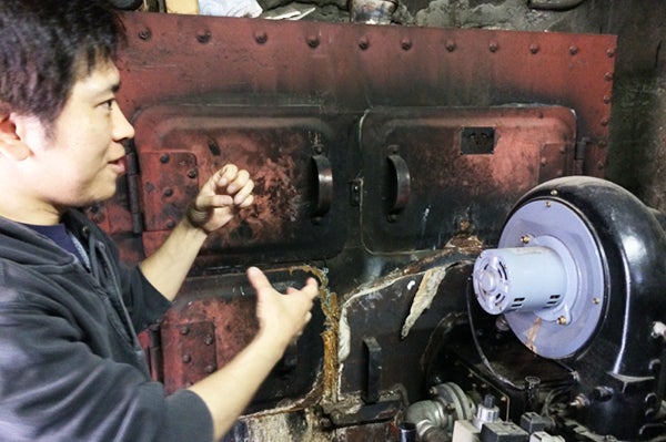 「松の湯」が解体された半年後、「鳩の湯」の店主・高張光成さんとお会いする機会ができました。お話を伺うと、世代交代した上で今後も営業を続けていく決意をされているとのこと。しかし老朽化していたボイラー(浴槽に加温する為に使用)の交換はできたものの、他の設備等へ廻す資金の余裕はなく、浴場では特に富士山のペンキ絵や壁面、天井等が傷んだままの状態となっていることをお話いただきました。