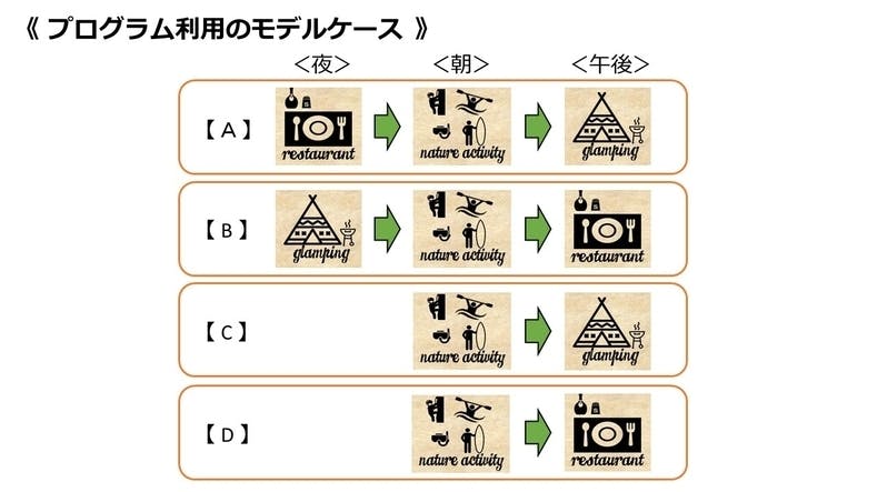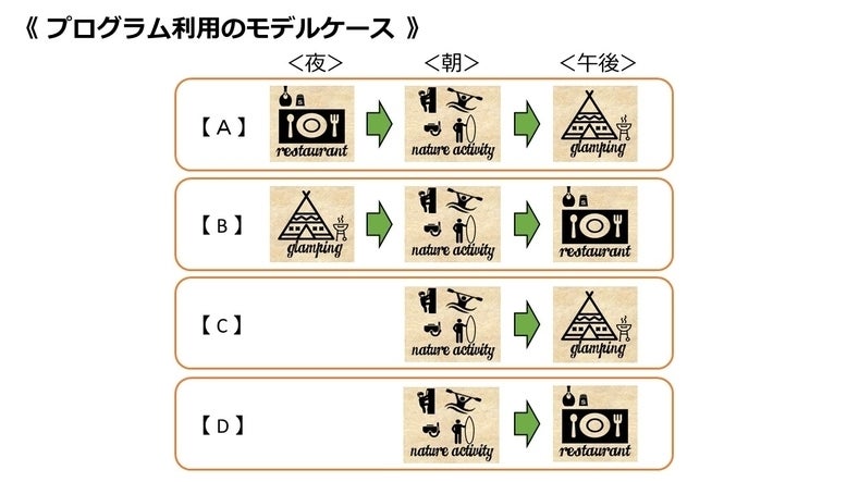 そこに用意されているのは、ありのままの自然を遊び尽くすアクティビティ、地産の素材を堪能できる食、絶景を目の前に臨む滞在時間、など地域にあふれる自然を心ゆくまで体感できる様々なコンテンツです。