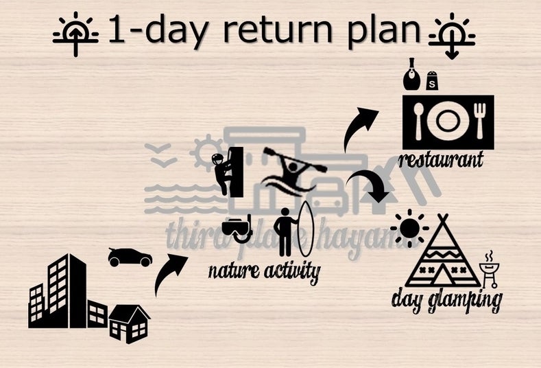 都心から1時間の利便性を活かし、朝自宅を出発して午前中にアクティビティを満喫。