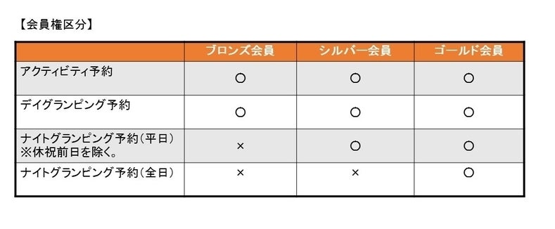 アクティビティにつきましては、既に定員締切りになりましたゴールド会員はもちろん、シルバー会員、ブロンズ会員すべての会員様がご利用いただけます。