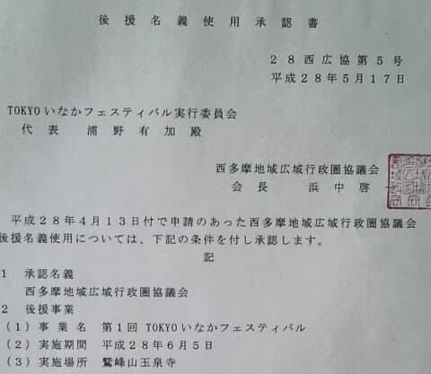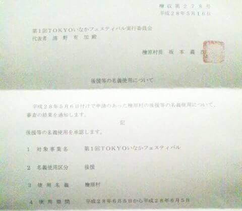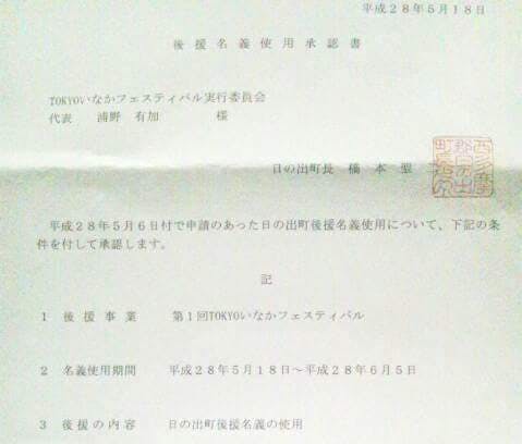 お隣の日の出町、東京最西の檜原村より、後援名義承認いただきました!