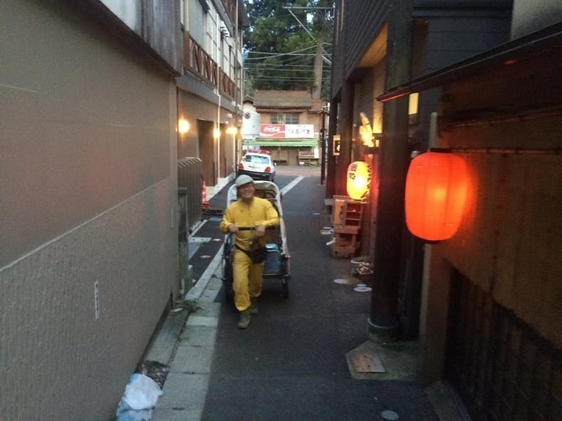 プロジェクトのポスターを貼らせてもらいにリアカーで奥多摩はバテレさんをゴールで目指しました。